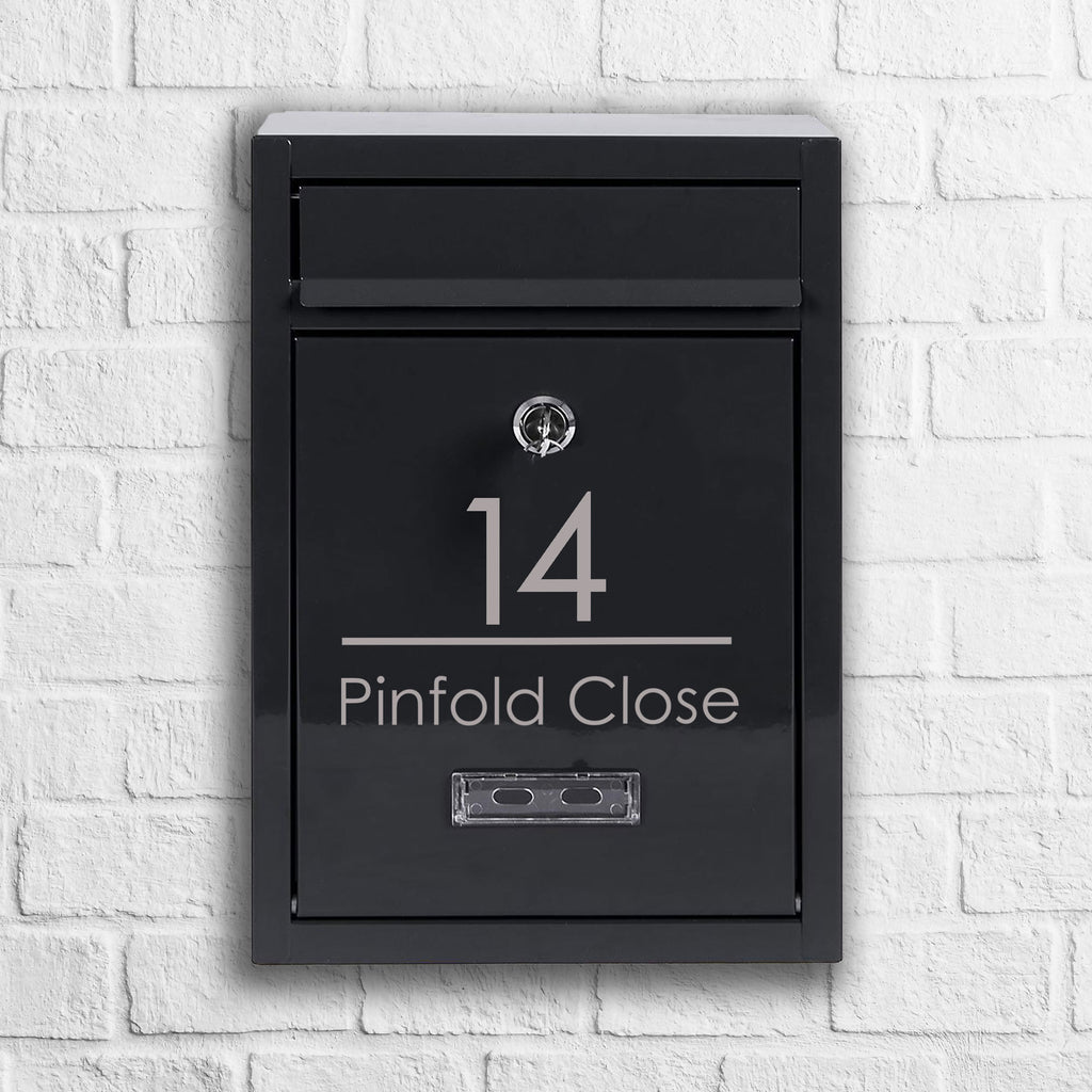 Features: Lockable with 2 keys, house number and name tag, Front loading slot, Wall Mounted with drilled holes for easy attachment to wall