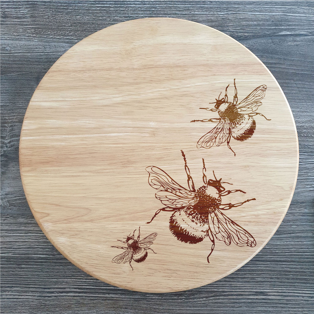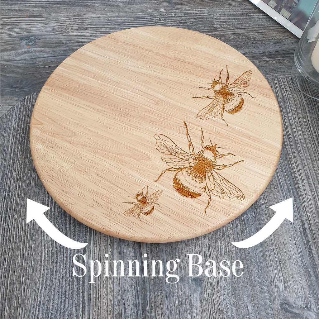 This Laser engraved lazy susan spinning board is designed with 3 bees and creates a perfect centrepiece for any table.