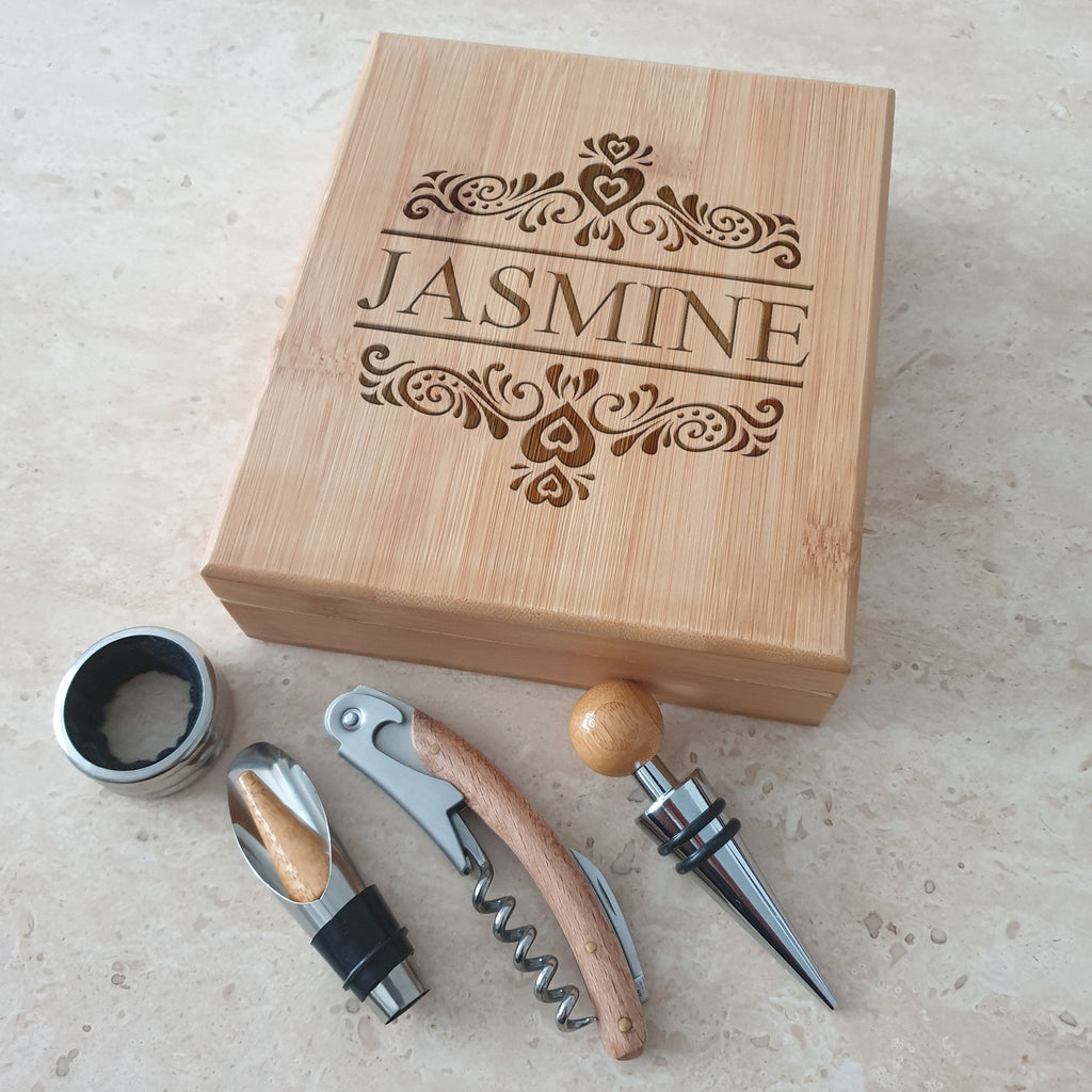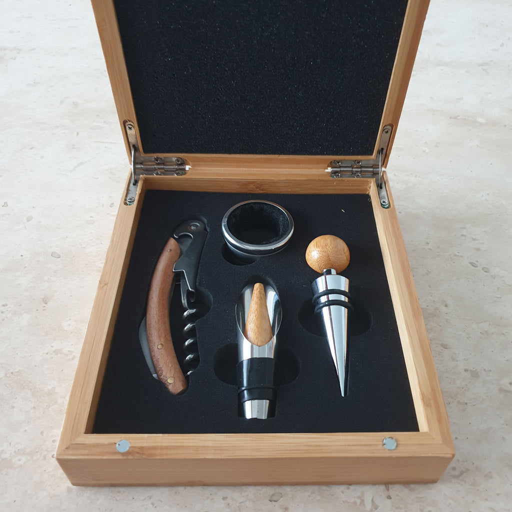 This wooden gift set is perfect for any wine lover and looks stunning when engraved.